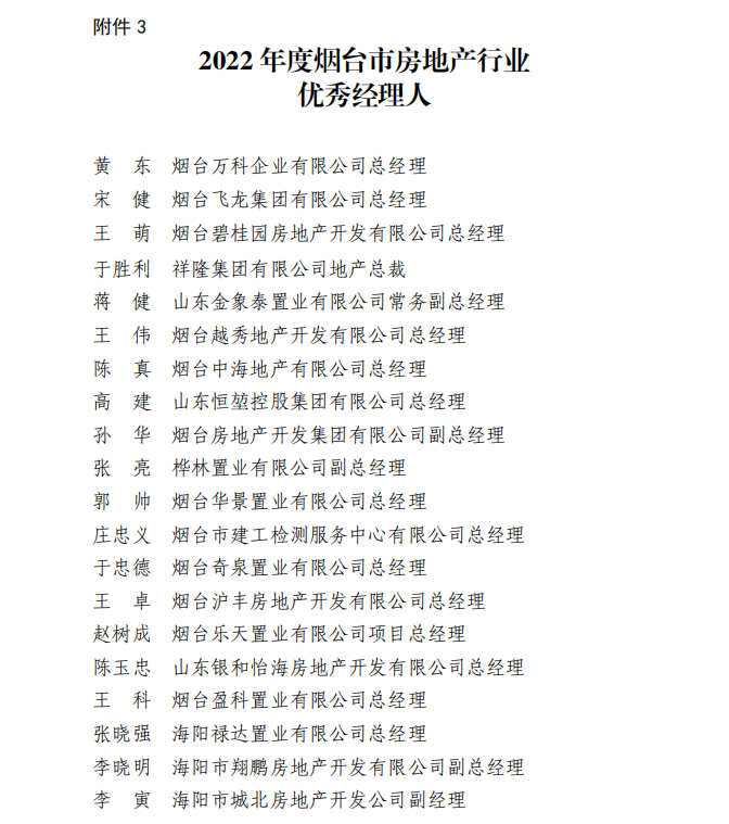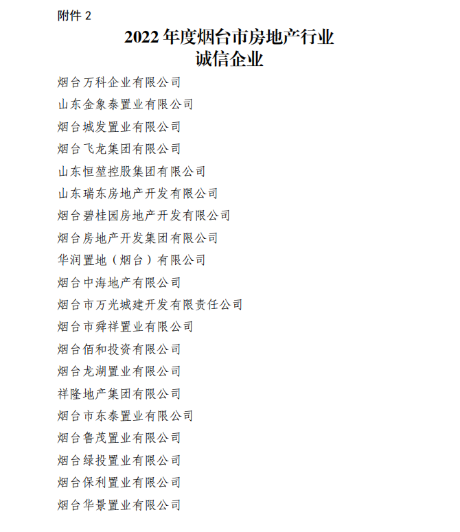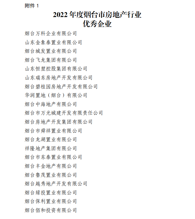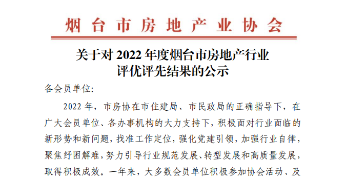 关于对 2022 年度烟台市房地产行业 评优评先结果的公示